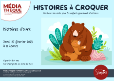 "HISTOIRES A CROQUER" est une espèce d'heure du conte. C'est un moment de plaisir, de découverte d'histoires, de rencontre et de voyage.